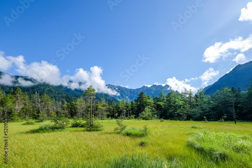 © Kazu8, Obraz premium 長野県松本市上高地の田代湿原と穂高連峰