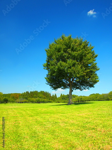 © smtd3, Obraz premium 秋のみさと公園の草原と立ち木のある風景