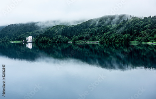 © 幹雄 渕木, Naklejka premium 夜明けの湖面に浮かぶ白い館
