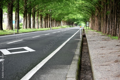 Obraz premium メタセコイヤの並木道、滋賀県、観光名所、フォトジェニック、夏、大木