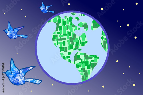 Fototapeta premium 宇宙を羽ばたく鳥 地球