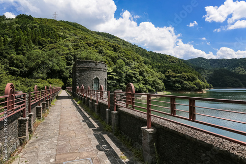 © area1964, Obraz premium 河内貯水池と堰堤の風景 北九州市八幡東区