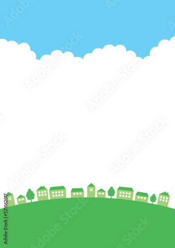 © Megane, Obraz premium 緑の街並みと空のフレーム背景