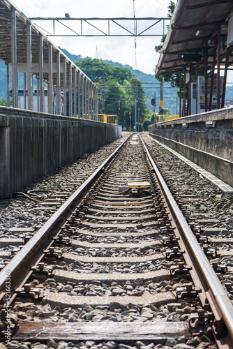 Fototapeta premium 日本の田舎の駅の線路