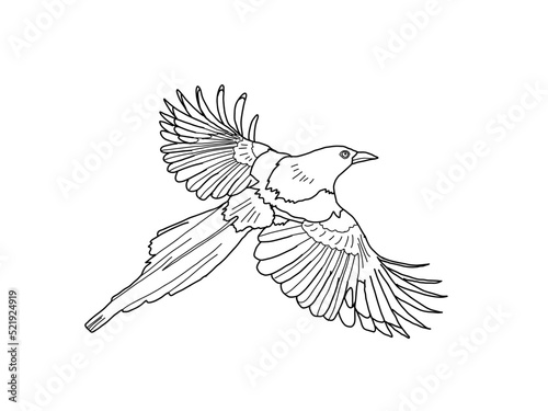 © archestman, Naklejka premium カササギ 県鳥(佐賀県)モノクロ