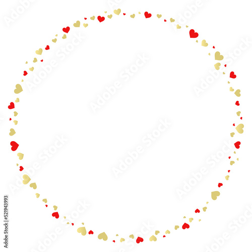 © mikehana, Obraz premium サイズ違いのランダムな赤色&ゴールドハートの丸い飾り枠
