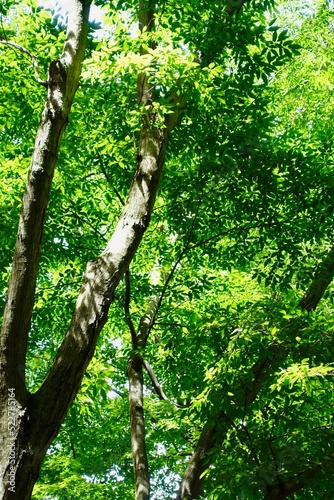 Obraz premium 新緑の背景 夏の日差しに透ける枝葉