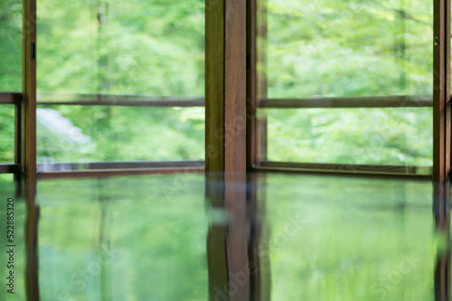 © ryo96c, Naklejka premium 京都 瑠璃光院の美しい新緑と緑を反射したテーブル