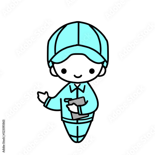 © en egawa, Obraz premium 笑顔で応対する作業員ユニセックス 青の作業服