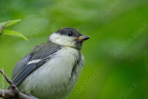 Obraz premium 幼いシジュウカラが枝にとまっている