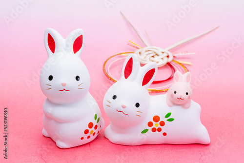 Obraz premium 写真素材:令和5年・2023年の干支は卯(う・うさぎ) 卯年の年賀状素材(和風、和紙、千代紙、お正月小物等)