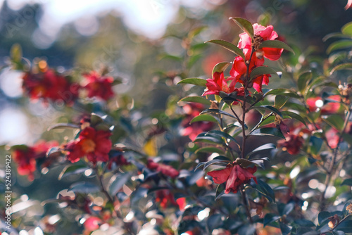 © Anoconone, Obraz premium 陽光できらめく山茶花