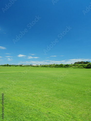 Obraz premium 真夏の誰もいない江戸川河川敷の野球場風景