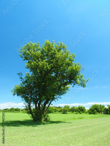 © smtd3, Fototapeta premium 猛暑日の立木のある誰もいない江戸川河川敷風景
