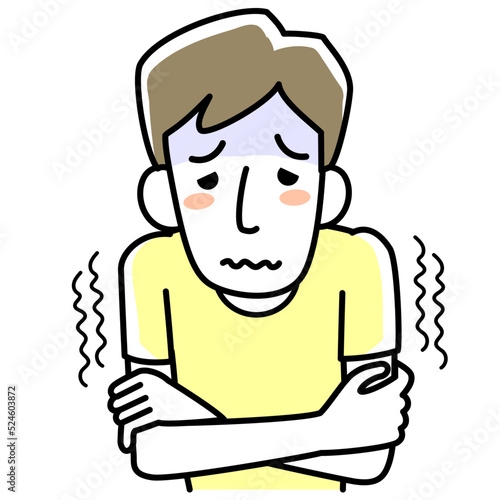 © marunouchi, Obraz premium 寒気がして震える若い男性の上半身