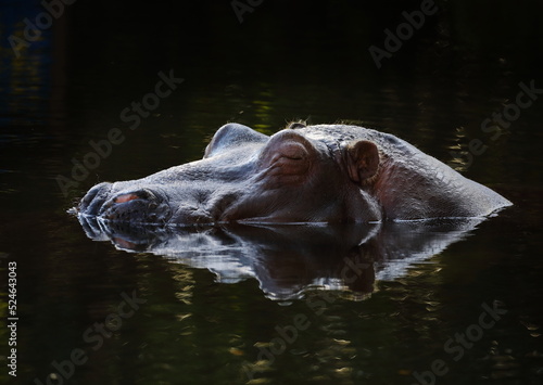 © osaru_photos, Fototapeta premium 水面から顔を出し眠るカバ