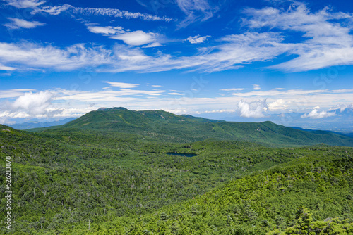 Obraz premium 夏の北八ヶ岳 『にゅう』山頂からの風景 白駒池を望む