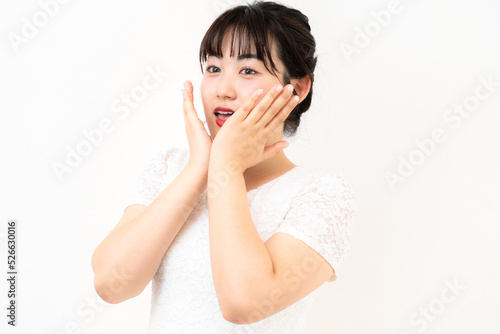 © promolink, Fototapeta premium 頬に手を当てる若い女性
