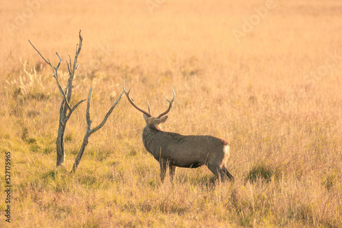 Fototapeta premium 夕日に染まる野付半島のエゾシカ「秋の北海道」
