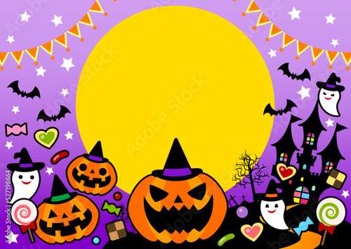 Fototapeta premium コミック風ハロウィン背景紫ヨコ