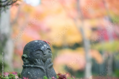 Fototapeta premium 京都 圓光寺の可愛らしいわらしべ地蔵と美しい紅葉景色