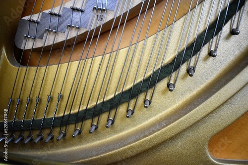 Obraz premium 国産アップライトピアノの内部、フレーム、弦、響板など