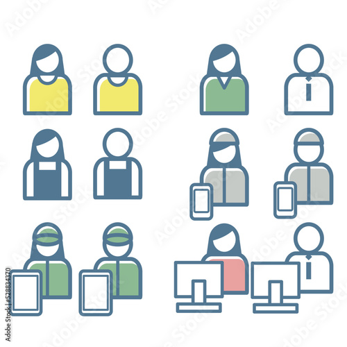 © marunouchi, Fototapeta premium 職業・産業に従事する人物のシンプルなアイコンセット