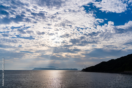 Fototapeta premium 雲の間から友ヶ島へ差し込む太陽の光芒