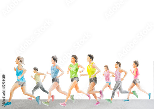 © akira_photo, Obraz premium 女性ランナー 手描き水彩