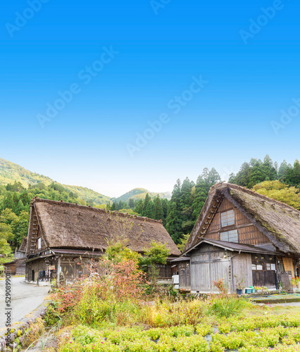 Obraz premium 白川郷 合掌造り 世界文化遺産 飛騨高山 板壁 晩夏
