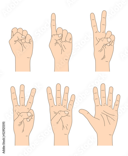 © yotto, Fototapeta premium 0から5の手のセット