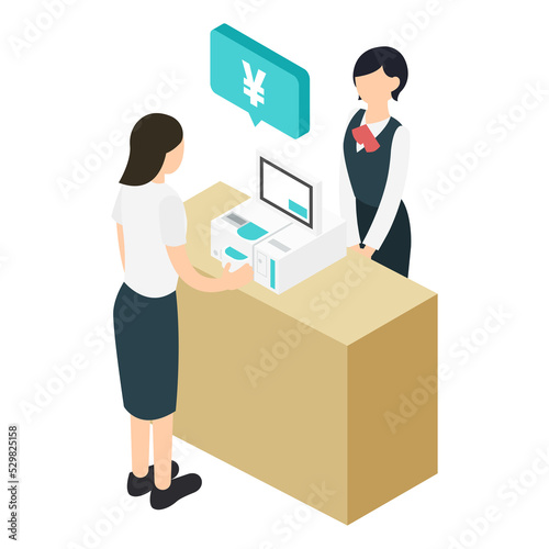 © たかはし まりな, Obraz premium セルフレジを使う女性と受付女性