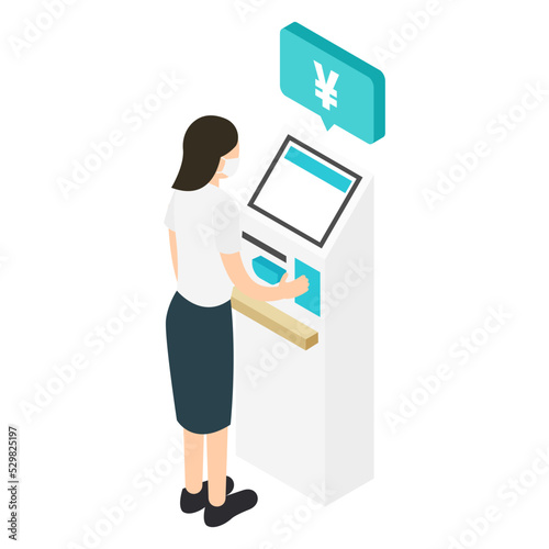 © たかはし まりな, Obraz premium 精算機で支払いをするマスクをした女性