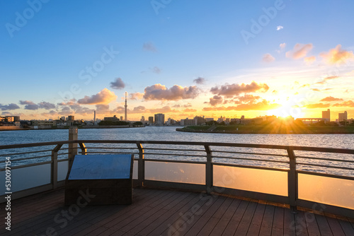 Obraz premium 東京都葛飾区 中川奥戸展望デッキと夕日