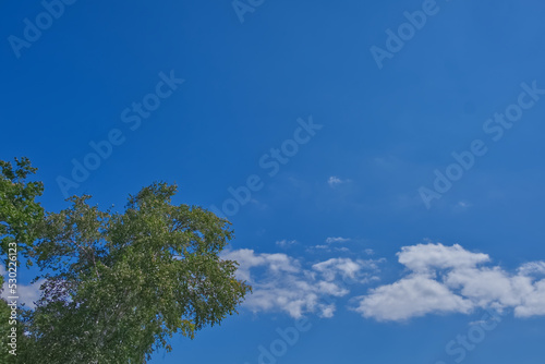 Obraz premium 文字入れしやすそうな空間たっぷりバージョン 木と青い空 雲あり