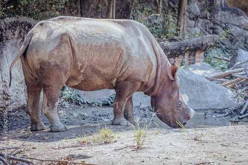 Naklejka premium 水を飲むクロサイ