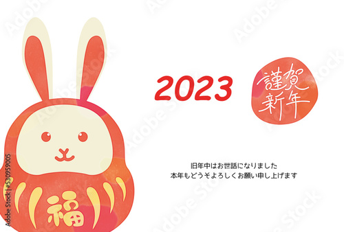 Fototapeta premium 2023年 卯年 年賀状テンプレート 横 水彩
