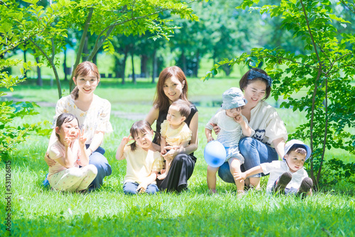 © maru54, Obraz premium 公園で遊ぶ家族たちの集合写真