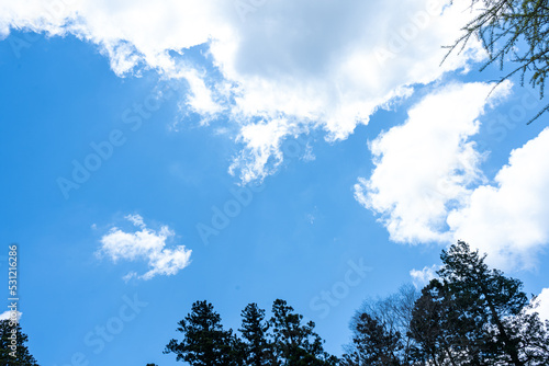 © Kenta, Obraz premium 雲のある青空の下の植物