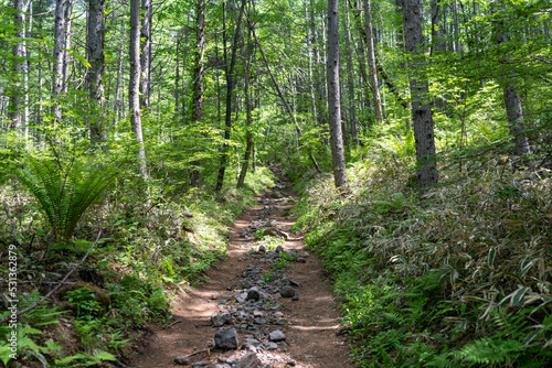 © UNI, Fototapeta premium 山の奥へ続くハイキングコース