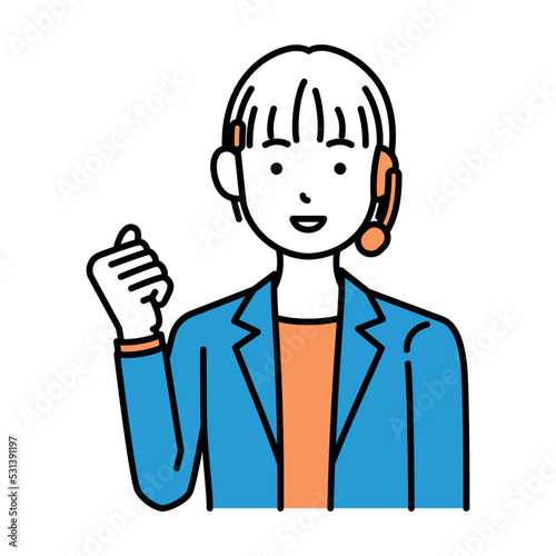 Obraz premium コールセンター オペレーター 女性 ガッツポーズ ショートカット