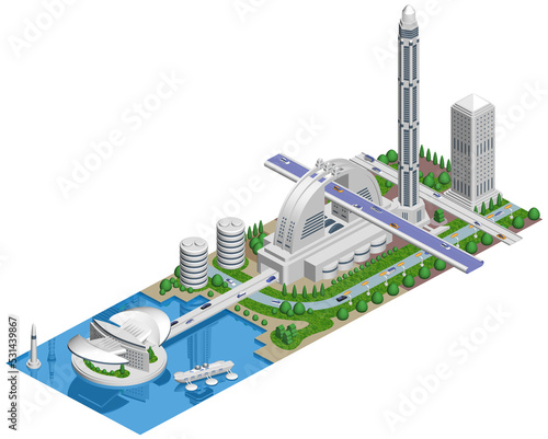 © robinfixx, Obraz premium ブロックのように組み合わせれば大きな未来都市になる街並みイラスト バリエーションあり