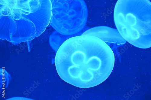 Obraz premium 水中を元気に泳ぐミズクラゲ