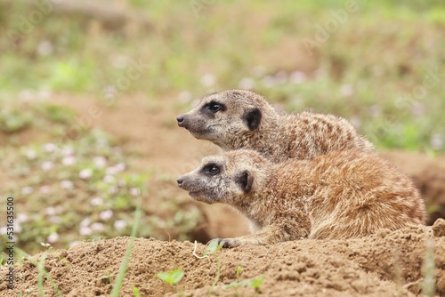 Fototapeta premium 並んで遠くを見つめるミーアキャットの夫婦