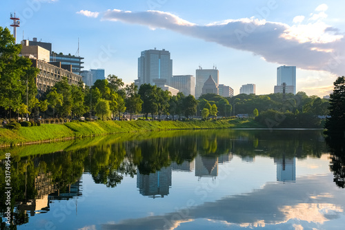 Naklejka premium 東京都千代田区 皇居外苑 夕暮れの桜田濠