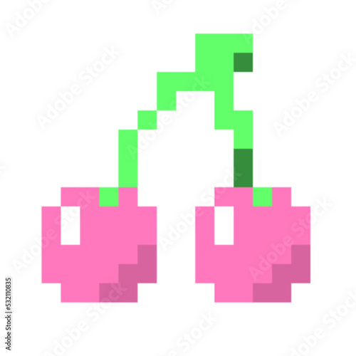 Obraz premium サクランボ ドット絵 アイコン ピンク