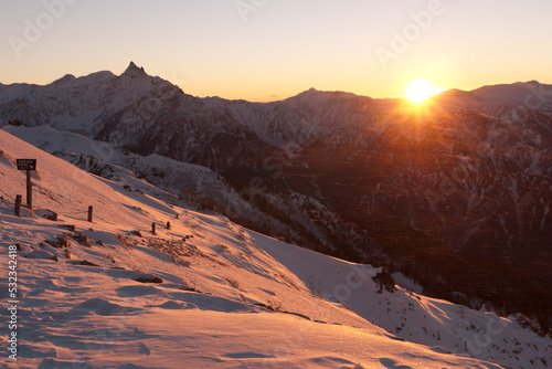 © shomomo, Naklejka premium 夕日と槍ヶ岳