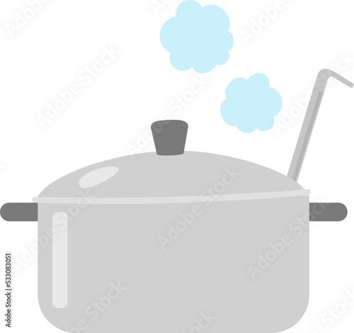 Obraz premium レードルを入れた湯気を上げる鍋