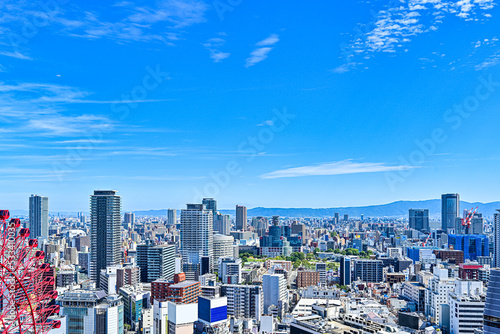 © S.K, Fototapeta premium 青空背景の梅田街並み 【大阪風景写真】