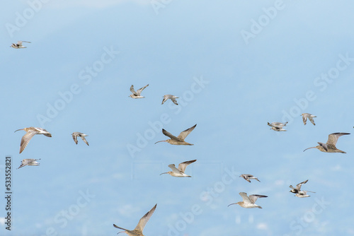 Obraz premium 野鳥のシギの群れ